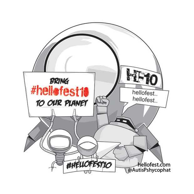 BRING #HELLOFEST10 TO OUR PLANET. mereka menuntut agar event tahunan tersebut dilaksanakan di planet mereka. menurut salah satu pendemo yang berhasil