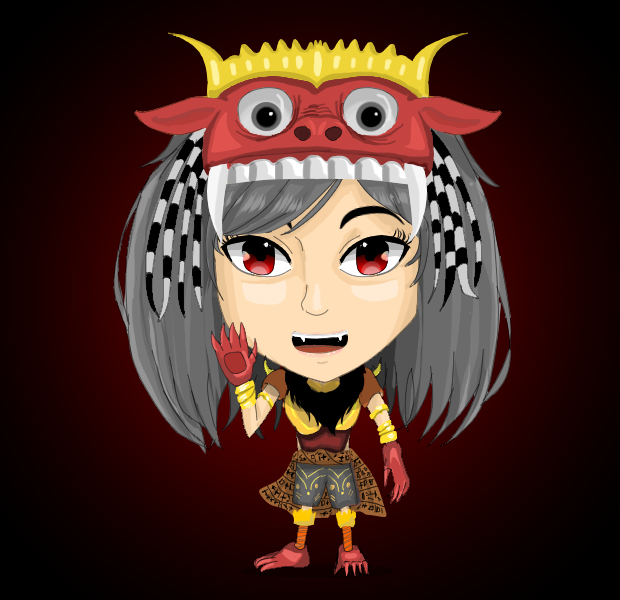 Gadis bermata merah melambangkan warna kulit dari Barong