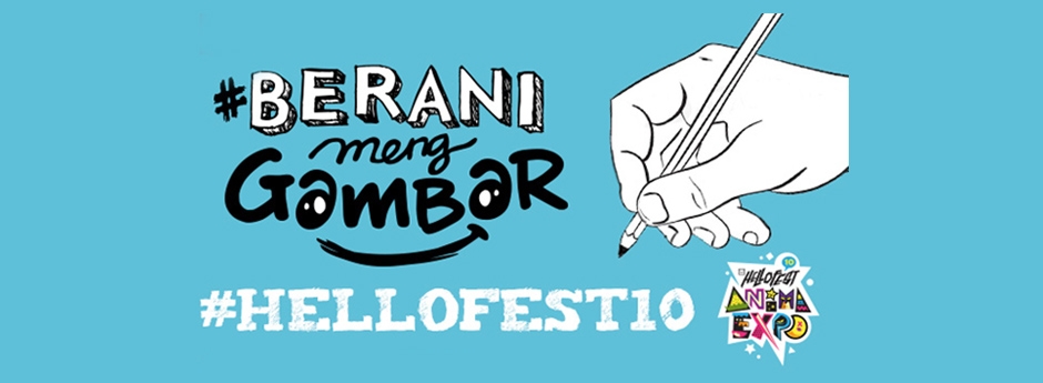 Mention karya kamu ke twitter @kdri @maswaditya dan @hellofest dengan tagar #BeraniMenggambar #HelloFest10