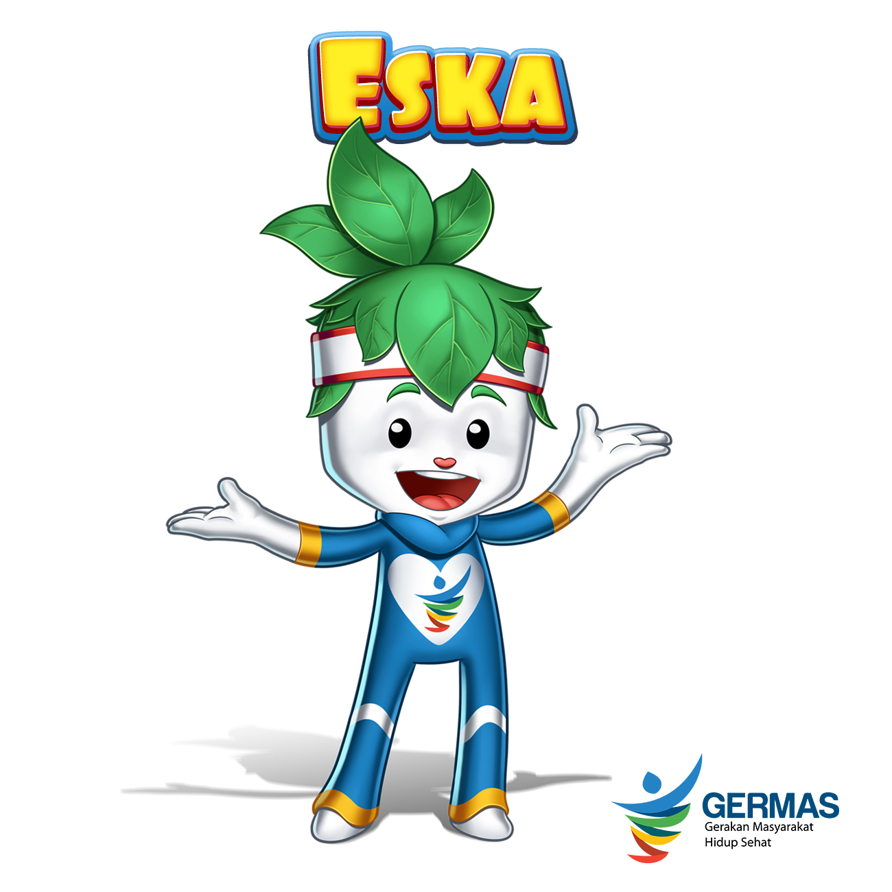 Nama Eska berasal dari dua huruf S dan K yang merujuk pada inisial kata Sehat dan Kuat. Ciri khas dari maskot ini adalah riang ceria, ramah dan enerjik. Desain kostum dari maskot yang berupa baju training lengkap dengan headband di kepala menunjukkan bahwa maskot gemar berolah raga. Sumber energi dari maskot ini adalah rambutnya yang berbentuk sayuran. Di siang hari Eska akan beraktifitas dengan semangat sambil mengumpulkan energi dengan melakukan proses fotosintesis pada rambutnya, dan pada malam hari pantang baginya untuk begadang agar tidak membuang energi. Hal ini sesuai dengan pola hidup sehat. Selain itu bentuk sayur yang selalu melekat pada karakter yang lucu akan memberi kesan baik pada target yang takut atau kurang suka pada sayur.