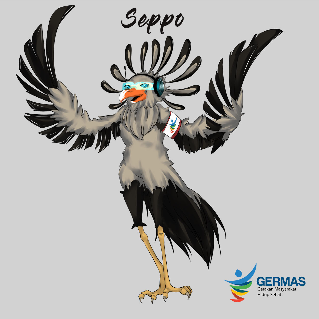 Maskot burung yang bernamakan "Seppo" merupakan maskot buatan saya yang terinspirasi dari burung yang bernama burung sekretaris. Dari namanya yaitu burung sekretaris, burung sekretaris ini akan membantu gerakan masyarakat layaknya seorang sekretaris. Seppo juga menggunakan kacamata biru yang canggih dimana kacamata tersebut tersimpan data-data masyarakat Indonesia. Seppo juga menggunakan headphone di telingannya yang berguna untuk menerima informasi langsung/darurat. Dan ditangan bagian kanannya terdapat simbol GERMAS. Dan sekian informasi dari Seppo :)